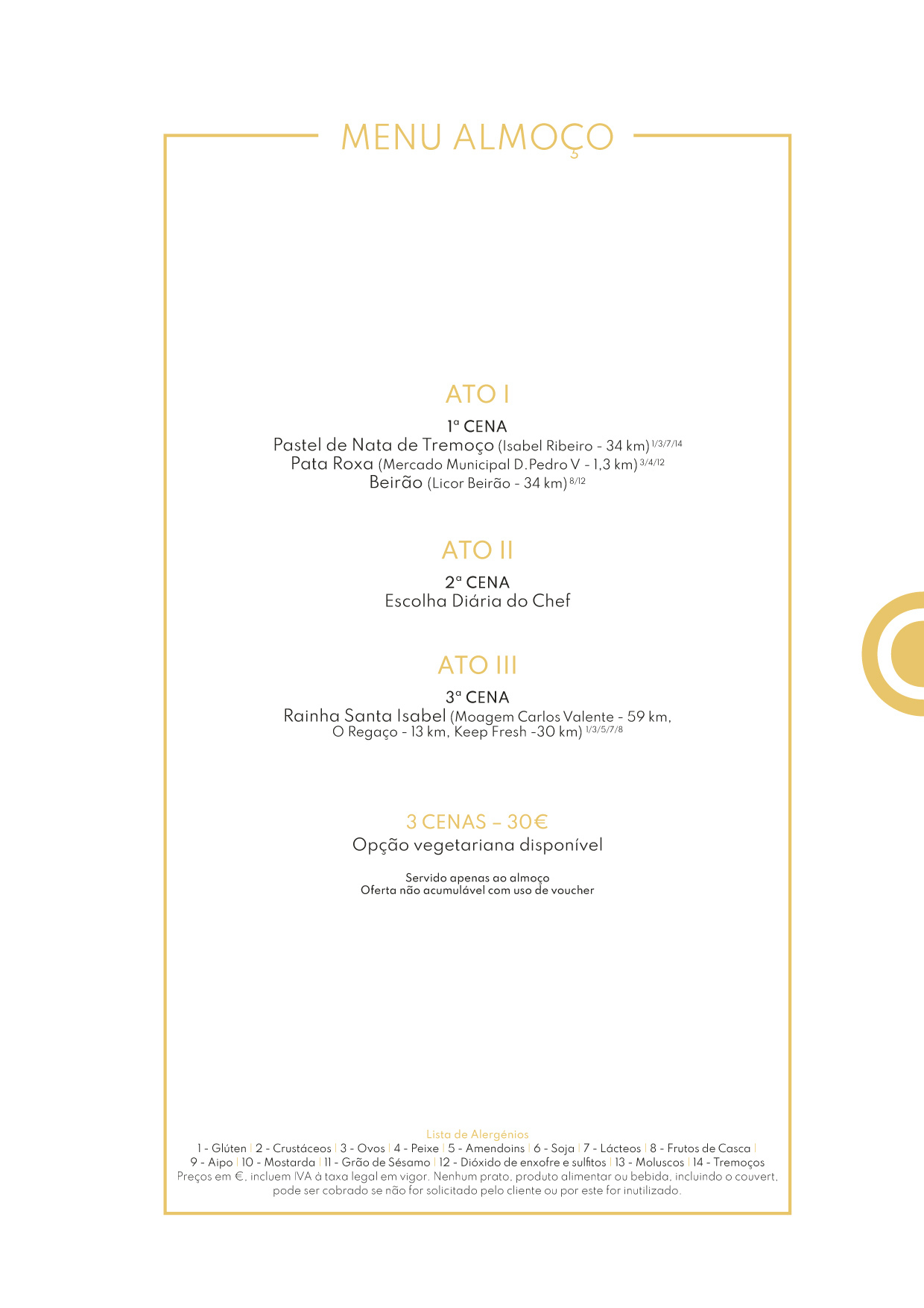 Ao almoço o Menu 10 Cenas é servido até às 13h30.